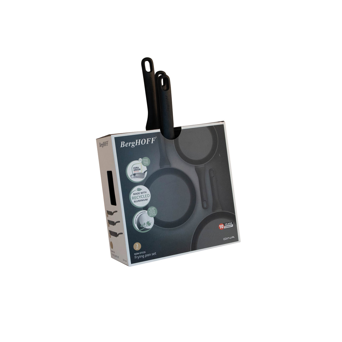 Komplektā ietilpst 3 pannas (20, 24 un 28 cm), kas izgatavotas no pārstrādāta alumīnija un pārklātas ar veselīgu, keramisku CeraGreen nelīpošo pārklājumu. Ideālas gatavošanai ar nelielu vai bez eļļas un viegli kopjamas. Pateicoties fenola rokturiem un pārklājumam, pannas var izmantot cepeškrāsnī līdz maksimāli 150°C.