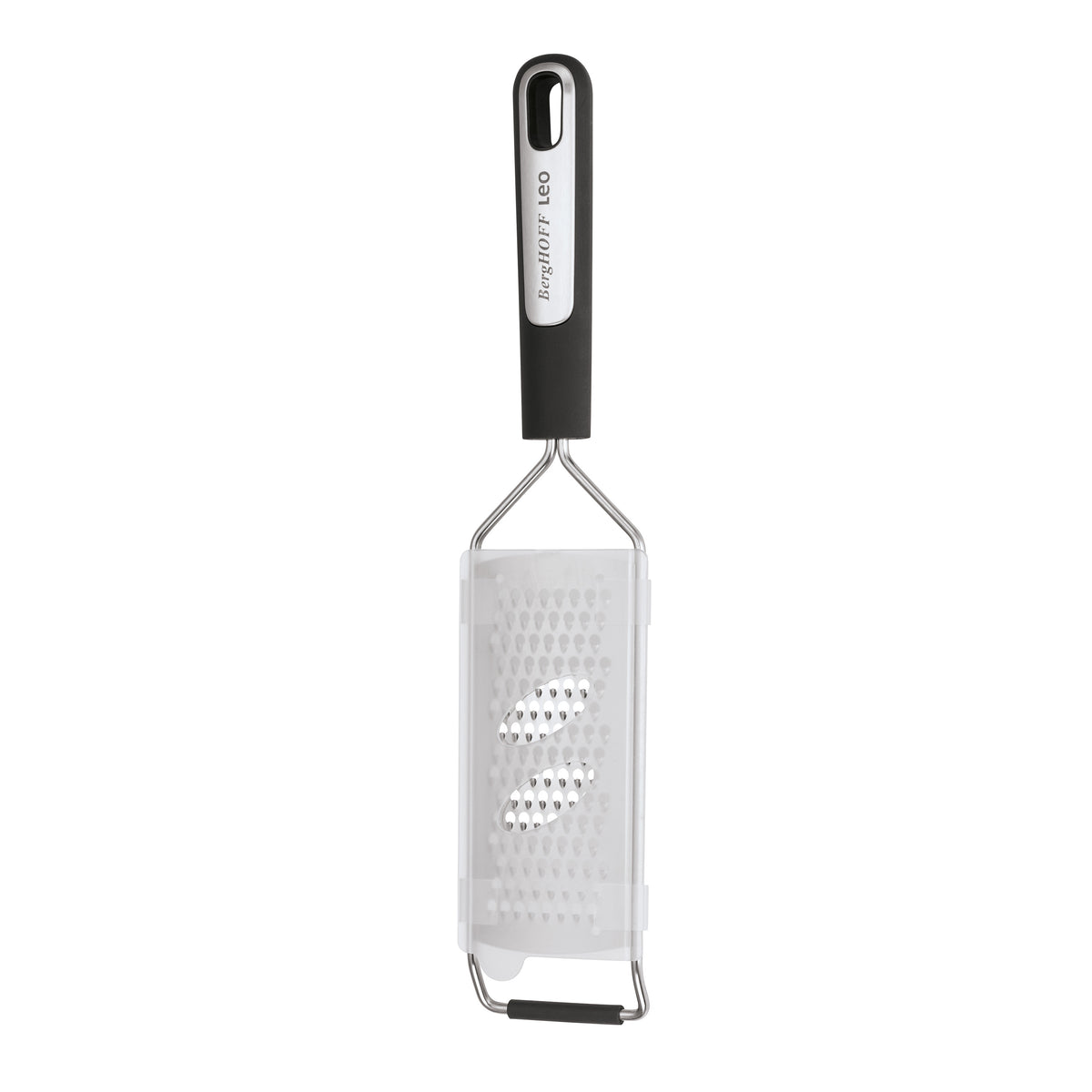 Kāposts, cukini, kartupeļi, mīkstie sieri — neatkarīgi no tā, ko vēlaties sarīvēt, ar šo „Graphite“ rokas rīvi to paveiksiet ātri un efektīvi. Neslīdošā pamatne nodrošina papildu stabilitāti un pasargā darba virsmu vai šķīvi. Kad asais nerūsējošā tērauda asmens ir padarījis savu darbu un esat rīvi ātri noskalojuši ar rokām, to droši var glabāt atvilktnē, izmantojot cieši piegulošu aizsargvāciņu, kas sargā rokas no iegriezumiem un uztur asmeni lieliskā stāvoklī.