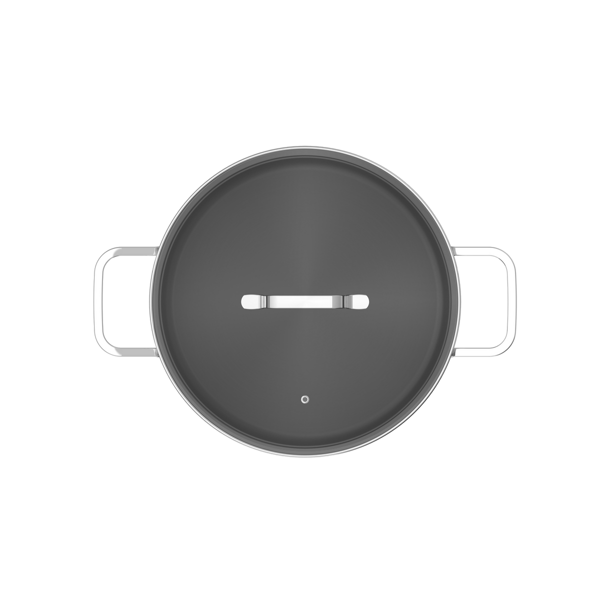 Cooking for a large group? Made from high-quality recycled stainless steel with a stylish satin finish, the 28x25cm covered stockpot features a capsule base that distributes heat quickly and evenly on any kind of cooktop, including induction. When you're ready to cook, simply use the handy capacity markings to measure out the right quantities and place the clear glass lid with integrated steam vent on top to speed up the heating process and keep an eye on your food as it cooks.
