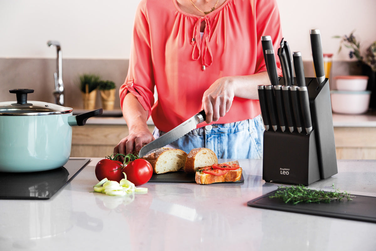 Быстро и легко нарежьте даже самую хрустящую корку хлеба или нежные помидоры с помощью этого ножа из нержавеющей стали. Хорошо сбалансированный нож удобно лежит в руке и позволяет делать тонкие и аккуратные ломтики. Его зубчатое лезвие из нержавеющей стали легко прорезает жесткую корку, не повреждая мякиш хлеба.