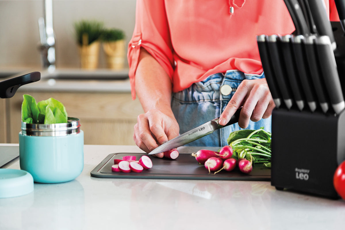 Как и положено одному из самых универсальных ножей на вашей кухне, этот нож из нержавеющей стали отлично справляется с множеством повседневных задач — от чистки и нарезки овощей до разделки мяса или нарезки хлеба. Острое лезвие из нержавеющей стали устойчиво к пятнам и коррозии, долго сохраняет остроту и легко обслуживается. Иными словами, этот универсальный нож — незаменимый помощник на вашей кухне!